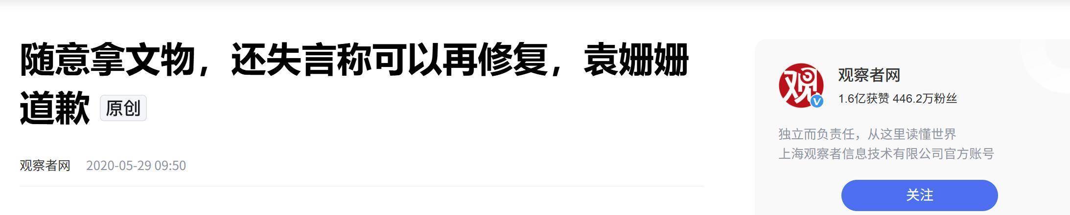 随意拿文物,还失言称可以再修复,袁姗姗道歉——观察者网