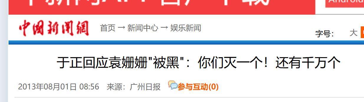 于正回应袁姗姗"被黑":你们灭一个!还有千万个——中国新闻网