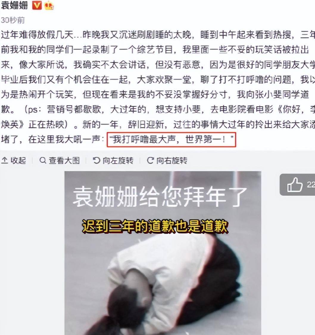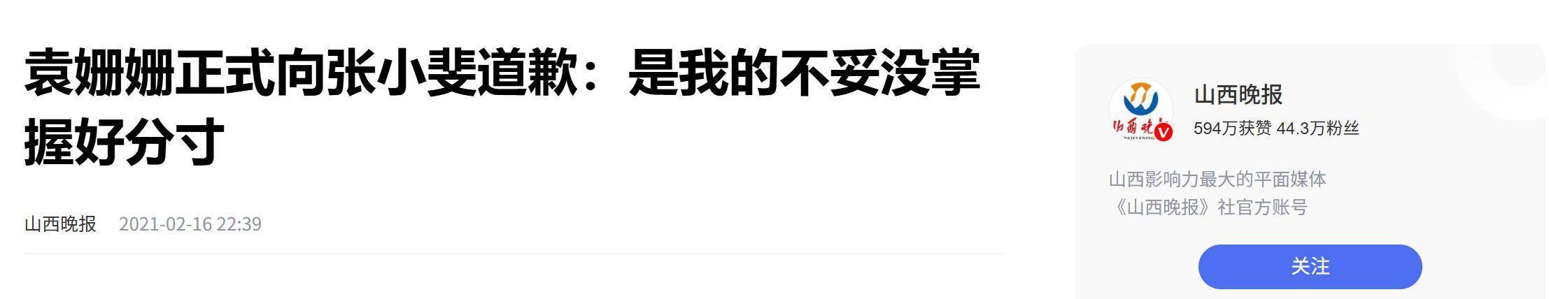 袁姗姗正式向张小斐道歉:是我的不妥没掌握好分寸——山西晚报