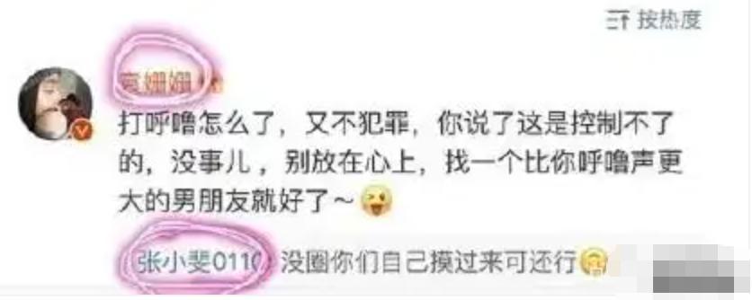 袁姗姗却在评论区回复:找个打呼更大的男朋友吧。语气轻巧,态度轻浮,惹来众怒。